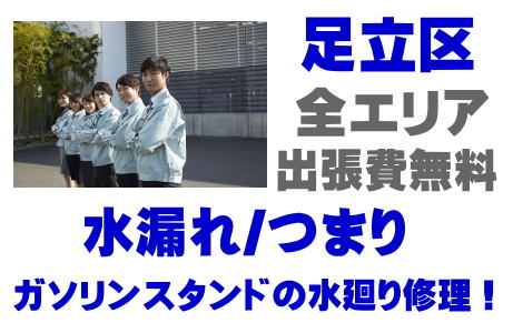 / 足立区出光水道修理 / 足立区昭和シェル漏水修理 / 足立区コスモ石油水道工事 / 足立区燃料スタンド水道業者 / 足立区太陽鉱油指定工事店