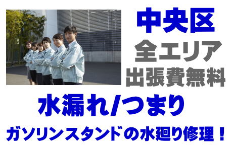 / 東京都中央区給油所店排水パイプつまり / 東京都中央区サービスステーション給湯器修理 / 東京都中央区SSシンク水漏れ / 東京都中央区セルフスタンドチェーンキッチン水漏れ