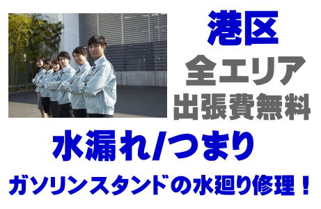 / 東京都港区ENEOS水道修理 / 東京都港区出光水道修理 / 東京都港区昭和シェル漏水修理 / 東京都港区コスモ石油水道工事 / 東京都港区燃料スタンド水道業者